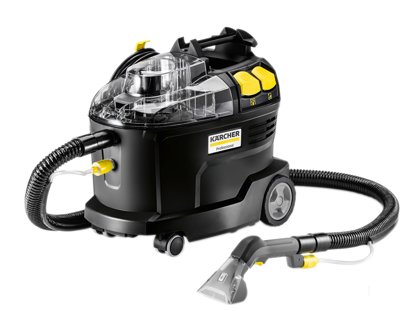 Pensé pour répondre aux exigences des environnements professionnels, le Kärcher Puzzi 8/1 Go!Further combine performance, mobilité et simplicité d’utilisation dans un format compact et robuste.
