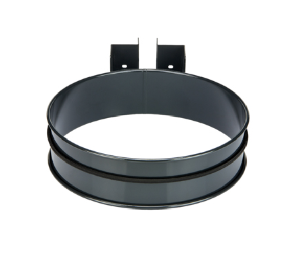 Tôle galvanisée poudré polyester ; maintien du sac par ceinture élastique ; fixation murale ou sur poteau ; vis fournies.